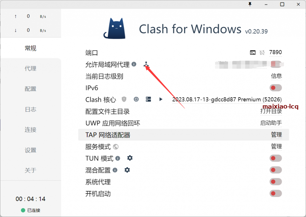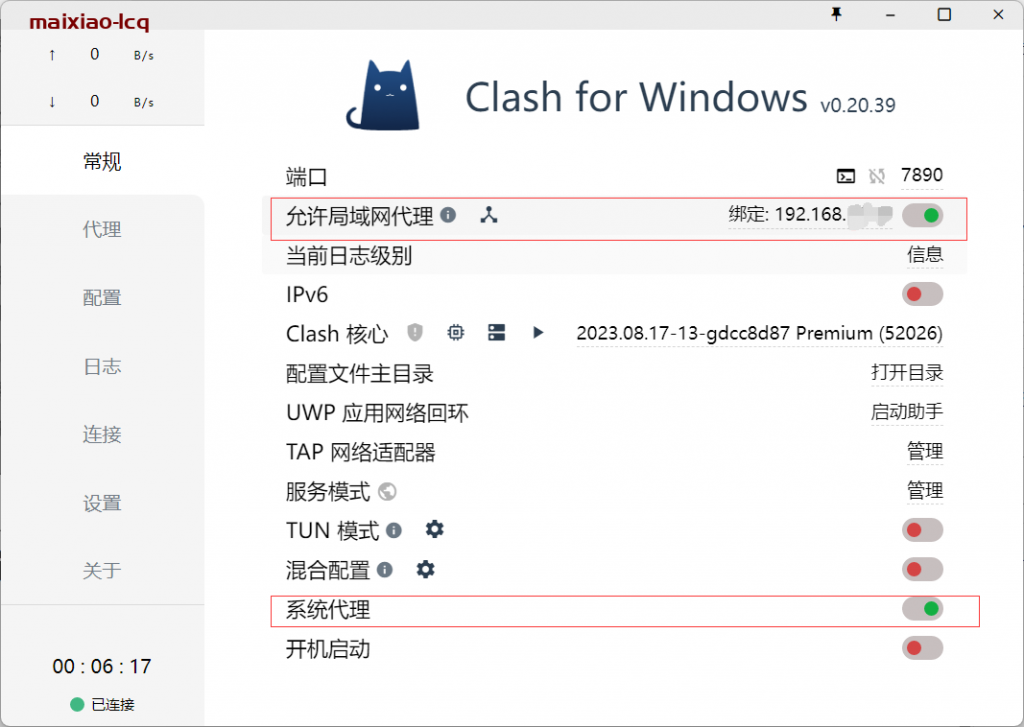 2.2,然后我们配置允许局域网代理,填写我们本地的IP,并开启